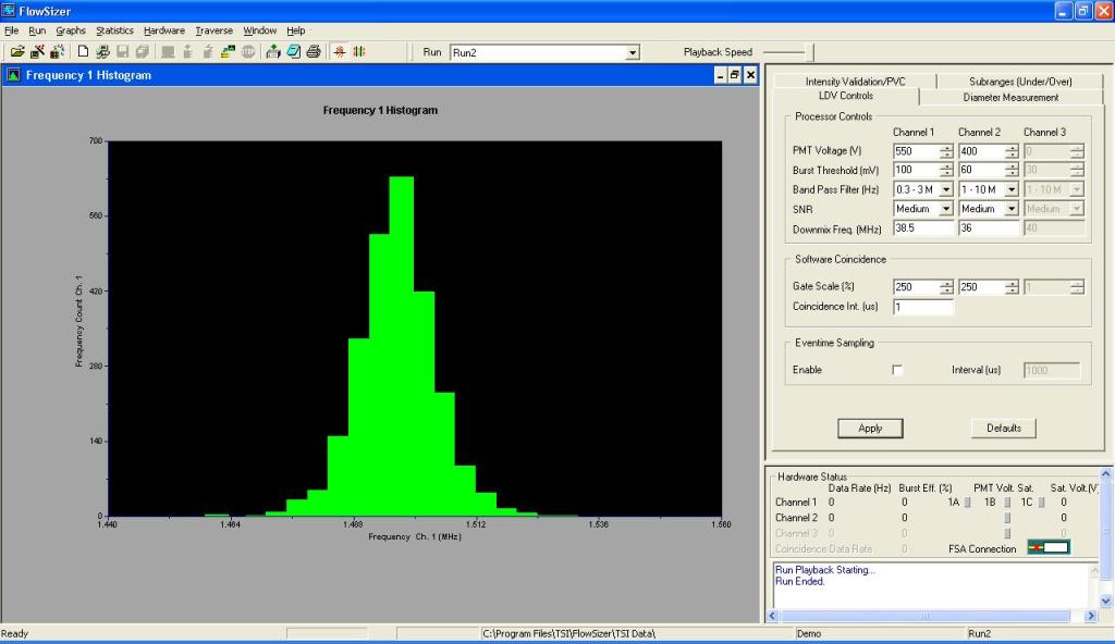 When using laser Doppler velocimetry (LDV), the bandpass filter and the downmix frequency within the signal processor should be set appropriately in order to both adequately capture the signal of interest as well as to achieve the best resolution.