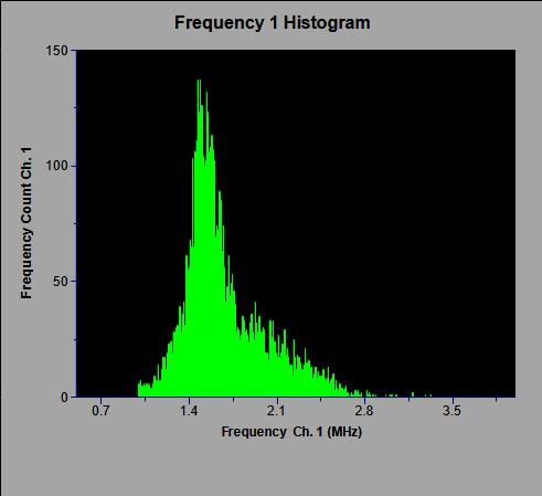 Once the BPF has been chosen, we want to adjust the DM so that the data peak in the frequency histogram is centered within the BPF, or near the lower end of the BPF, without “clipping” data. This allows us to maximize the resolution within our BPF.